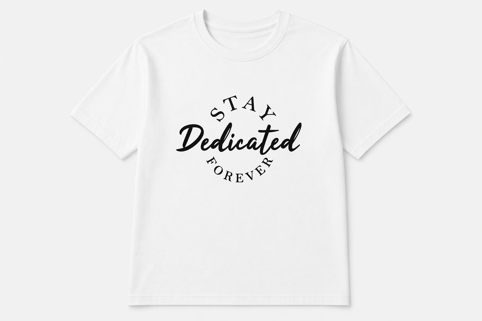 Finished with the Stay Dedicated Forever graphic, it represents the mindset—showing up, putting in the work, and staying locked in no matter what.